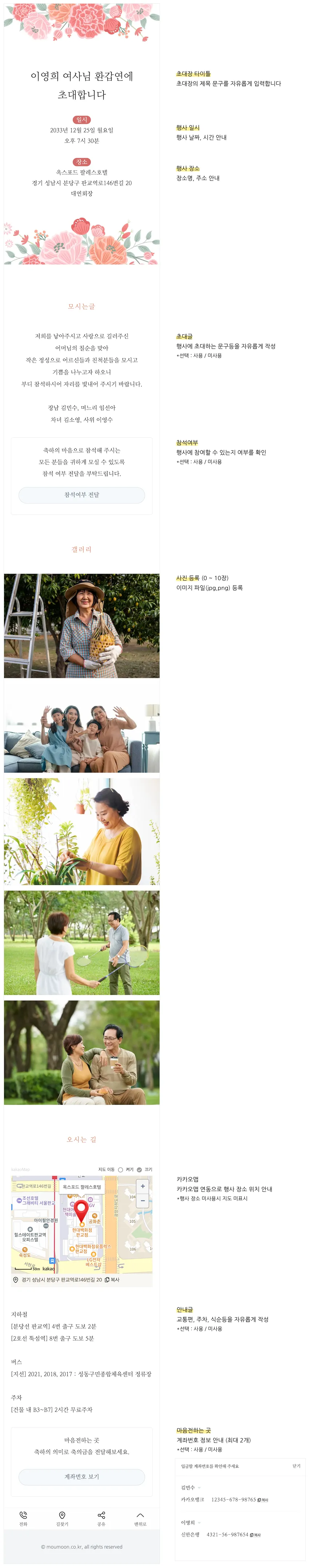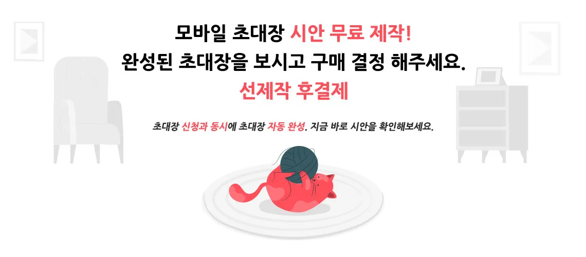 셀프 신청과 동시에 모바일 초대장이 실시간 자동 완성 됩니다.