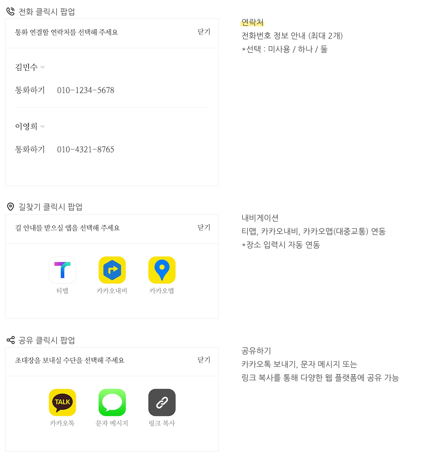 카카오톡등 다양한 SNS를 통해 초대장 공유가 가능합니다..